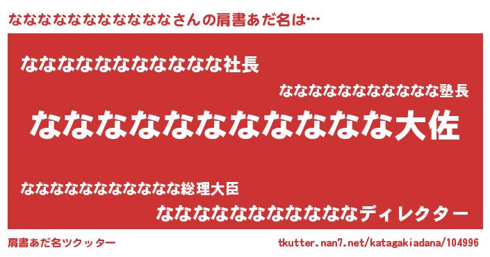 | 女子向けラノベタイトル風あだ名 | 『なななななななななななの玉の輿計画!』 |
