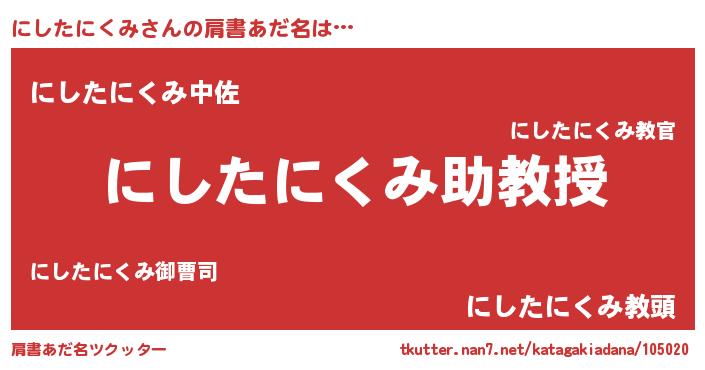 | 男性向けラノベタイトル風あだ名 | 『ノーゲーム・ノーニシタニクミ』 |