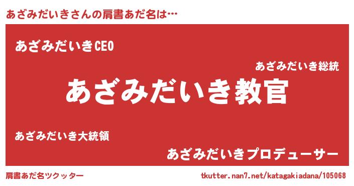| ヒーロー風カッコイイあだ名 | 『仮面アザダー』『スーパーアザミダイキ』 |