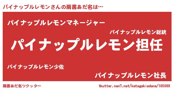 | 男性向けラノベタイトル風あだ名 | 『パイナップルレモンという概念が存在しない退屈な世界 』 |