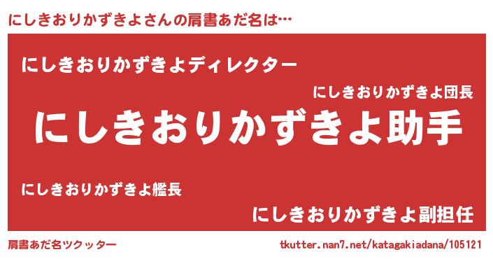 | ヘコむあだ名 | 『にしきおりかずきよ(笑)』『にし太郎』 |