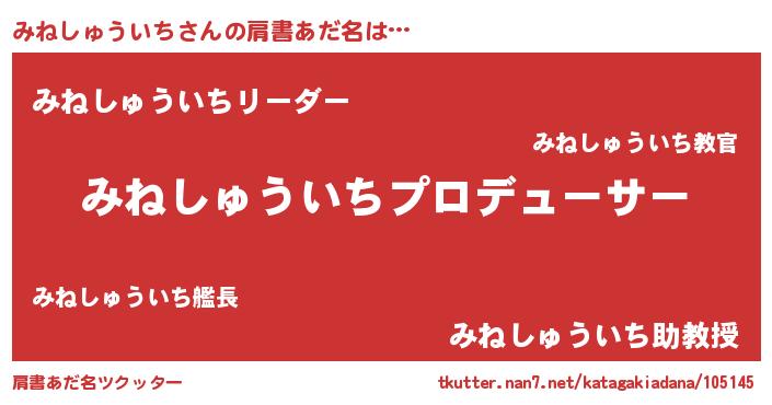 ヘコむあだ名 | 『みねっちょ』『みねしゅういち(震え声)』 |