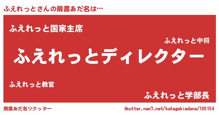 | 男性向けラノベタイトル風あだ名 | 『ふえれっとに滅ぼされるだけの簡単なお仕事です』 |