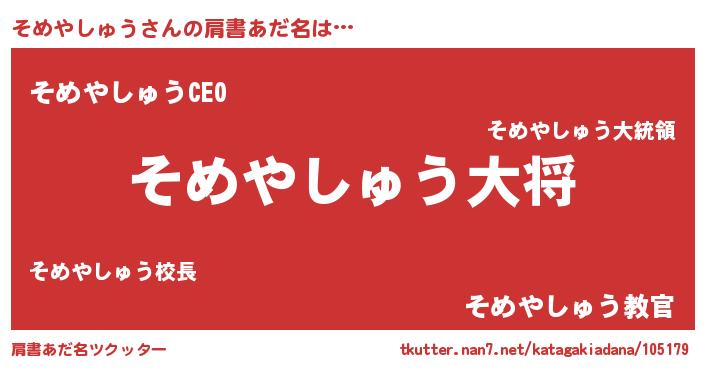 | 料理風あだ名 | 『そめやしゅうごはん』 |