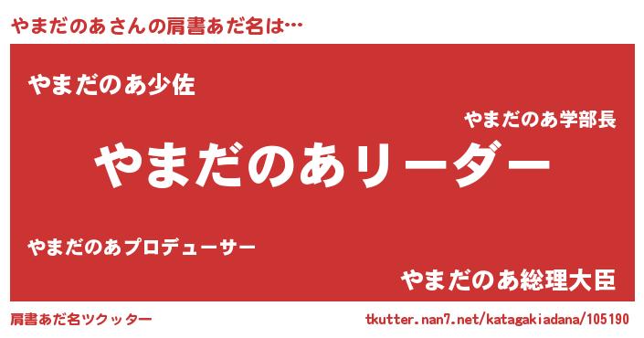 | ヒーロー風カッコイイあだ名 | 『銀牙騎士ヤマ』『慈愛の使者やまだのあ』 |