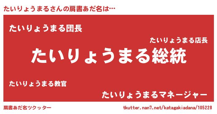 | 意味不明あだ名 | 『自称たいりょうまる』 |