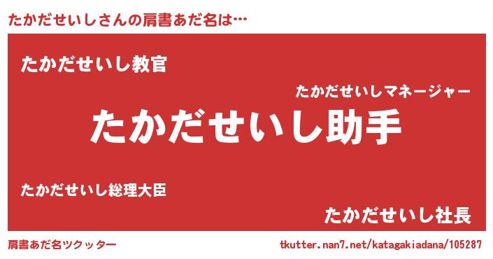 | 女子向けラノベタイトル風あだ名 | 『たかだせいし夫妻のなれそめ』 |