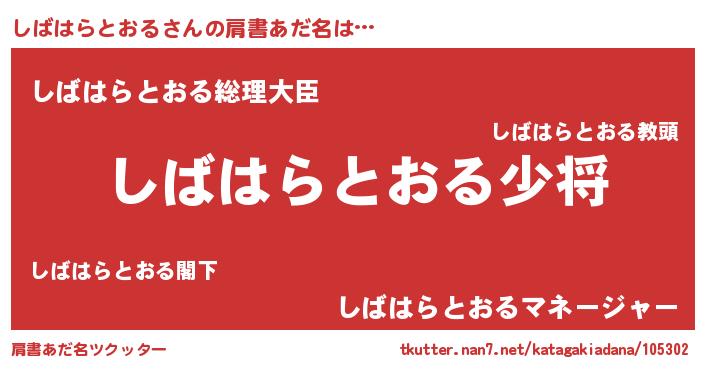 | 男性向けラノベタイトル風あだ名 | 『転生したらしばはらとおるだった件』 |