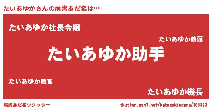 | ヘコむあだ名 | 『たいふぇ~』『たいあゆか(震え声)』 |