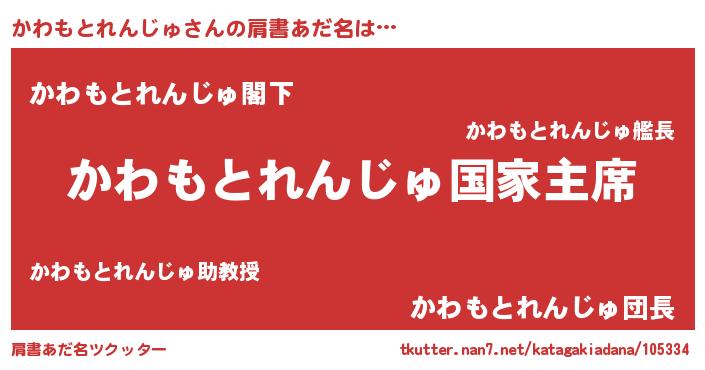 | ポケモン風あだ名 | 『カワモダネ』『カワセウス』 |