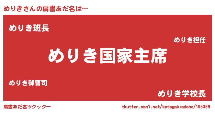 | 意味不明あだ名 | 『めりきフォーエバー』『永久保存めりき』 |
