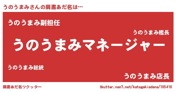 | 男性向けラノベタイトル風あだ名 | 『うのうまみに滅ぼされるだけの簡単なお仕事です』 |