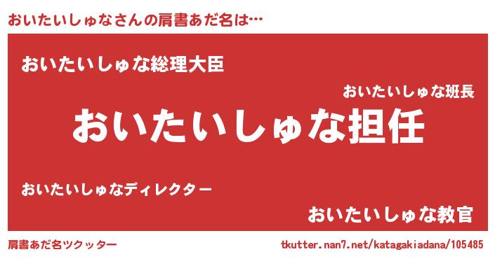 | ヘコむあだ名 | 『おいたいしゅな(震え声)』『なまこ酢』 |