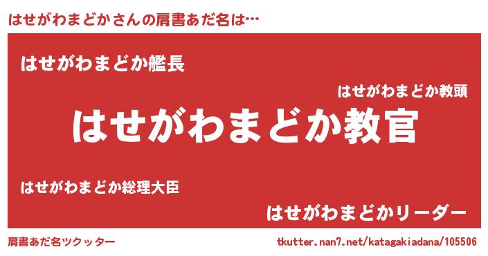 | ヘコむあだ名 | 『はせぷりん』『はせがわまどか(爆)』 |