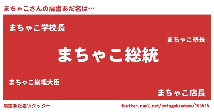 | 男性向けラノベタイトル風あだ名 | 『魔法科高校のまちゃこ』 |