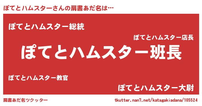 | 男性向けラノベタイトル風あだ名 | 『ぽてとハムスターの嫁は女の子じゃないと思った?』 |