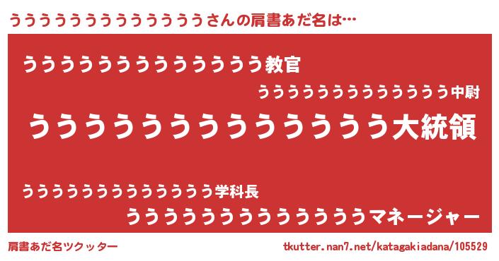 | 男性向けラノベタイトル風あだ名 | 『やはりうううううううううううううの青春ラブコメはまちがっている 』 |