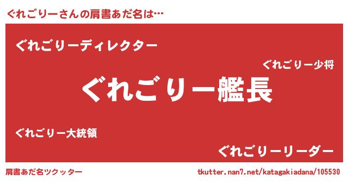 | 男性向けラノベタイトル風あだ名 | 『うちのぐれごりーが世界を掌握している!』 |