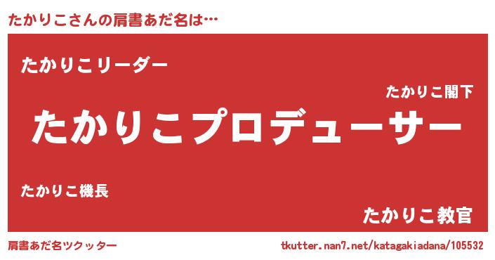 | 恥ずかしいあだ名 | 『タカリンリン』『タカリコデラックス』 |