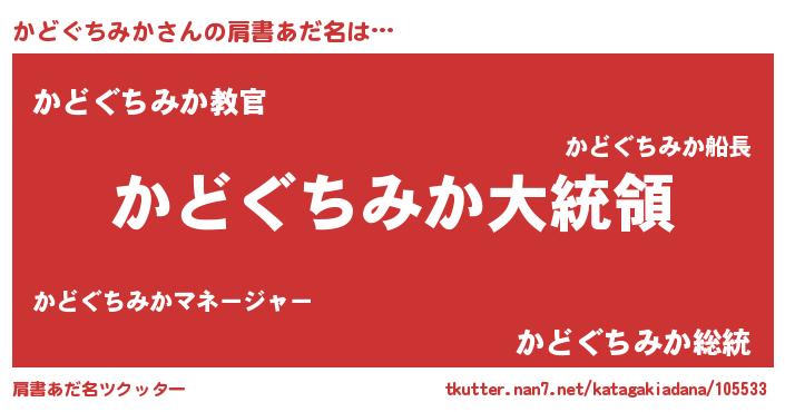 | 伝説のあだ名 | 『最強の忍者かどぐちみか』 |