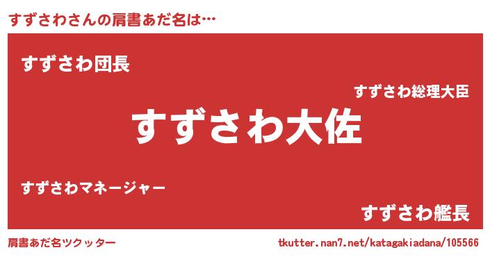 | ヒーロー風カッコイイあだ名 | 『暗黒騎士スズ』『ウルトラすずさわマン』 |