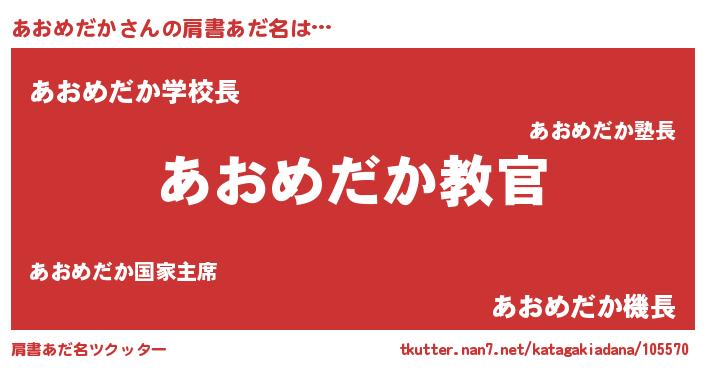 | 男性向けラノベタイトル風あだ名 | 『この素晴らしい世界にあおめだかを!』 |