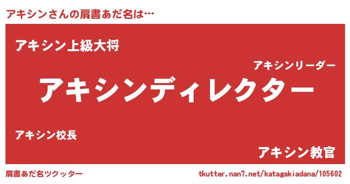 | ヘコむあだ名 | 『アキっぺ』『アキシン(遠い目)』 |