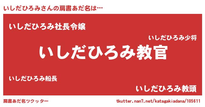 | 男性向けラノベタイトル風あだ名 | 『この素晴らしい世界にいしだひろみを!』 |