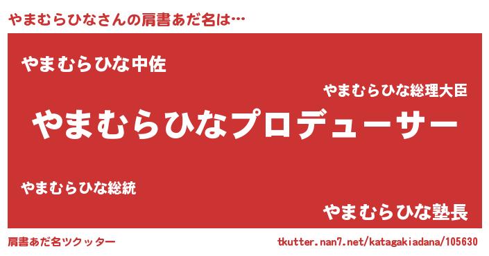 | 男性向けラノベタイトル風あだ名 | 『やまむらひなに滅ぼされるだけの簡単なお仕事です』 |
