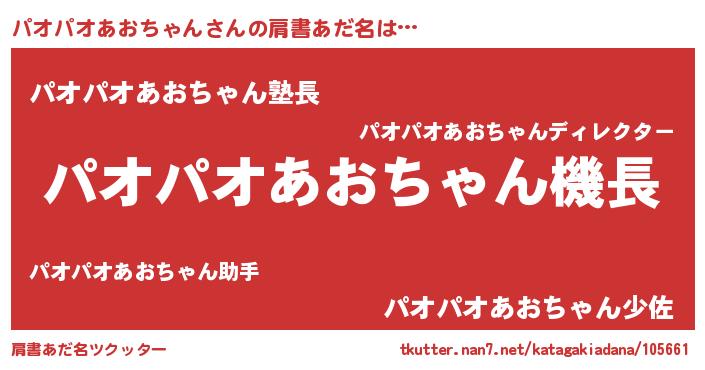 | 男性向けラノベタイトル風あだ名 | 『うちのパオパオあおちゃんが世界を掌握している!』 |