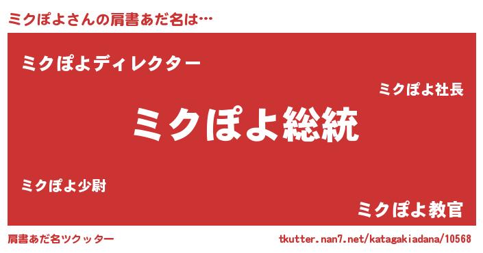 | ヒーロー風カッコイイあだ名 | 『ウルトラ戦士ミクポヨ』『仮面ミクダー』 |
