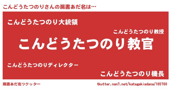 | 意味不明あだ名 | 『住所不定無職こんどうたつのり(59歳)』 |