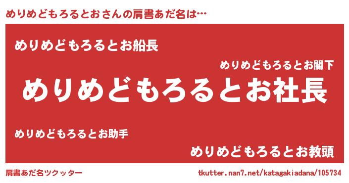 | ヘコむあだ名 | 『めりにー』『めりめどもろるとお(笑)』 |
