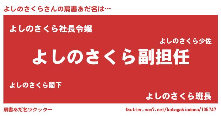 | 意味不明あだ名 | 『永久保存よしのさくら』 |