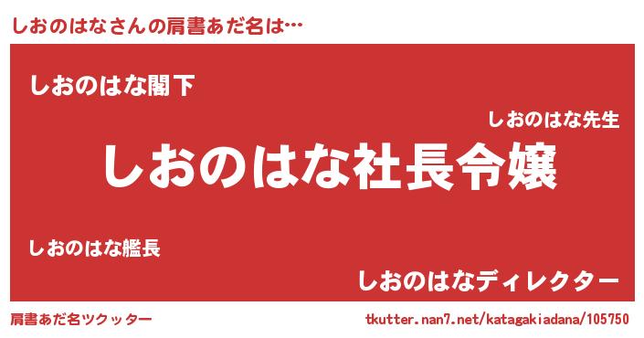 | ヒーロー風カッコイイあだ名 | 『スーパーシオノハナ』『ネオシオノハナ』 |