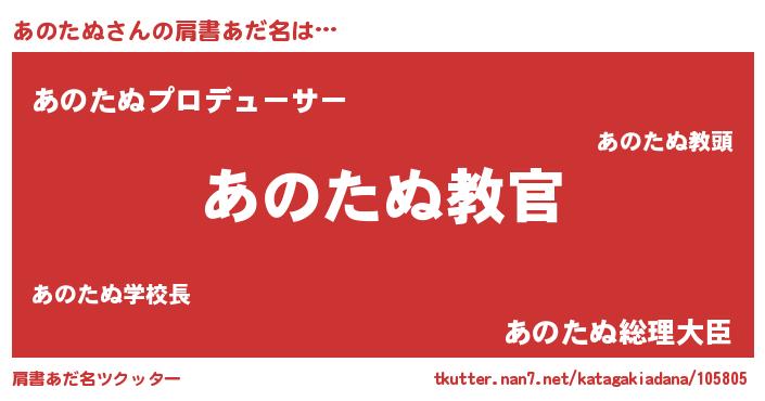 | 意味不明あだ名 | 『住所不定無職あのたぬ(95歳)』 |