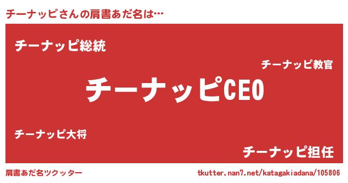 | ヒーロー風カッコイイあだ名 | 『スーパーチーナッピ』『ネオチーナッピ』 |