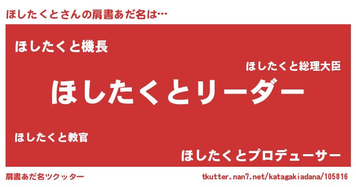| 胡散臭い通販商品みたいなあだ名 | 『信頼と実績のペンダント…その名も「ほしたくと」』 |