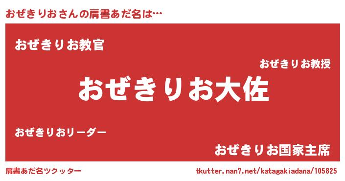 | 男性向けラノベタイトル風あだ名 | 『転生したらおぜきりおだった件』 |