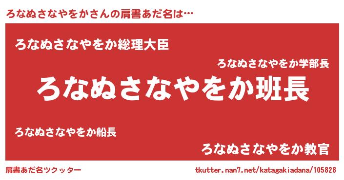 | 女子向けラノベタイトル風あだ名 | 『ろなぬさなやをかは平凡を望む』 |