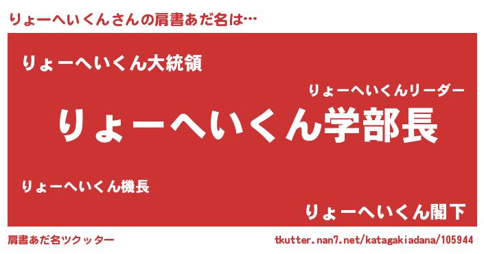 | 男性向けラノベタイトル風あだ名 | 『おまえをオタクにしてやるから、俺をりょーへいくんにしてくれ! 』 |