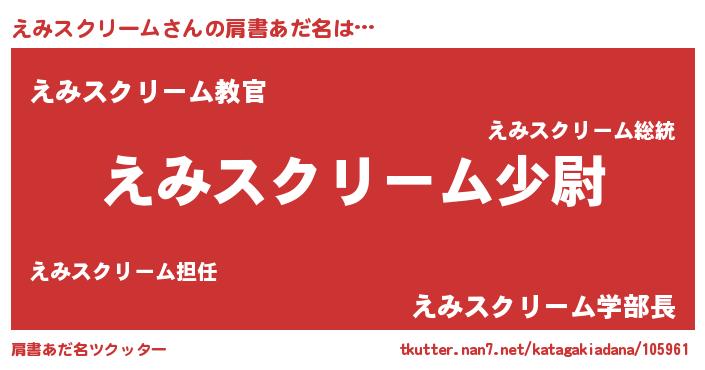 | 意味不明あだ名 | 『めかぶ科えみスクリーム属』 |
