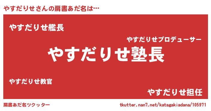 | 意味不明あだ名 | 『とにかく怪しいやすだりせ』 |