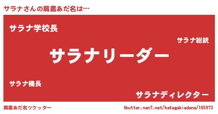 | 意味不明あだ名 | 『とにかく怪しいサラナ』『自称サラナ』 |