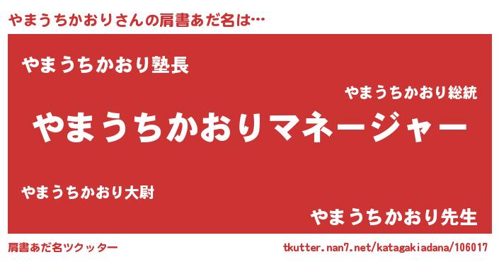 | 意味不明あだ名 | 『とにかく怪しいやまうちかおり』 |