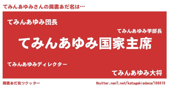 | 欧米人風あだ名 | 『てみんあゆみクリステル』 |