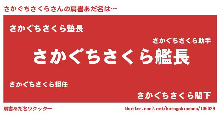 | ヘコむあだ名 | 『さかっ子』『さかぐちさくら(苦笑)』 |