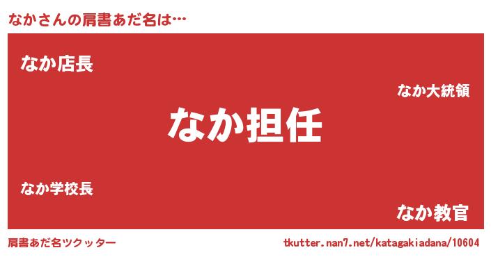 | ヘコむあだ名 | 『なか(苦笑)』『なかにゅー』 |