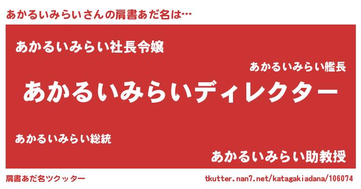 | 男性向けラノベタイトル風あだ名 | 『あかるいみらいに滅ぼされるだけの簡単なお仕事です』 |