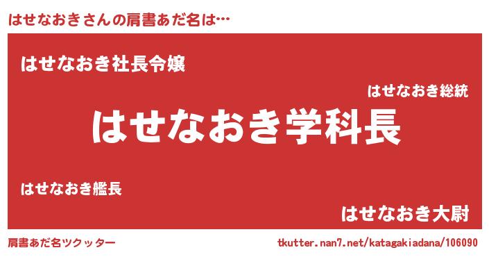 | 女子向けラノベタイトル風あだ名 | 『はせなおき恋絵巻』 |